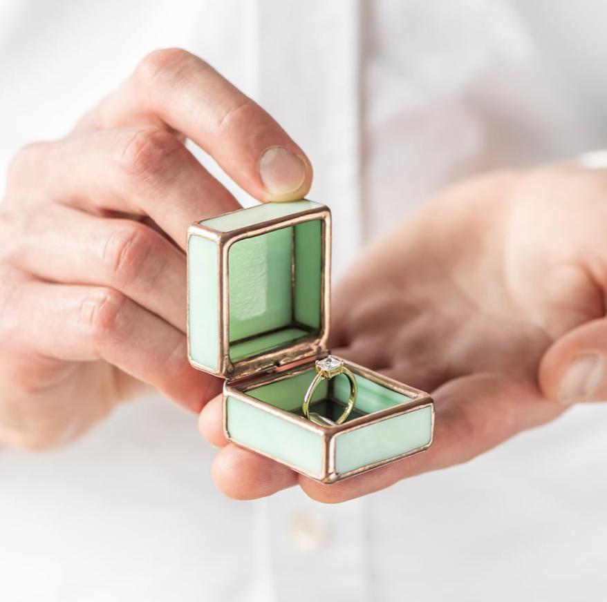 This gorgeous handmade ring box is made and designed by two brothers Ostap (a former architect) and Danylo (a marketer) in Lviv Ukraine, born in 2014 from their family’s stained glass business where they developed their craft assisting their mother in the creation of glass.
