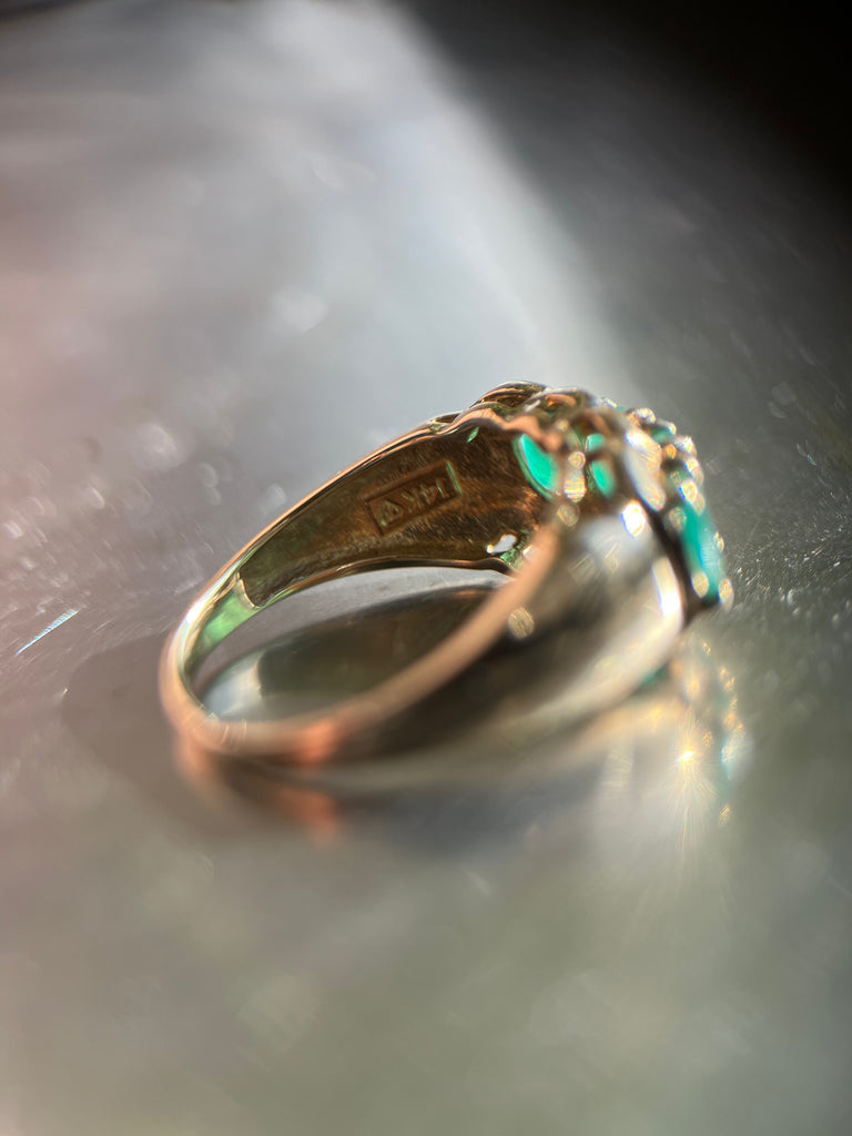 Authenticity: This ring's emeralds have been confirmed by a certified gemologist in the NYC Diamond District.