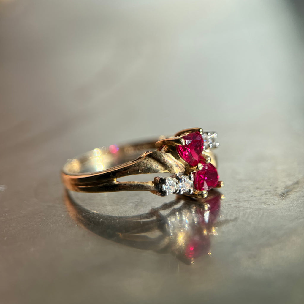The 1970's Twin Hearts Ruby x Ruby Ring: 10K Solid Gold