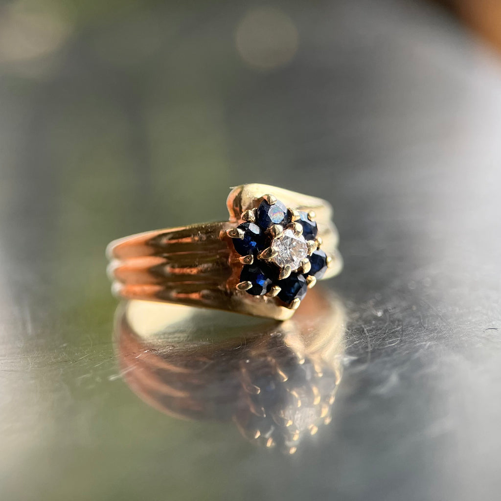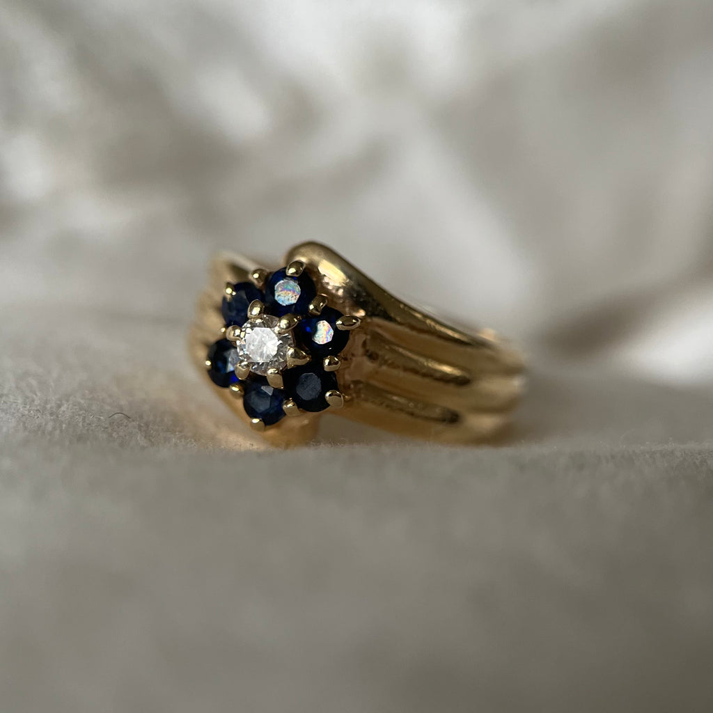 The Black Daisy Ring: Spinel and Diamonds 14K Solid Yellow Gold