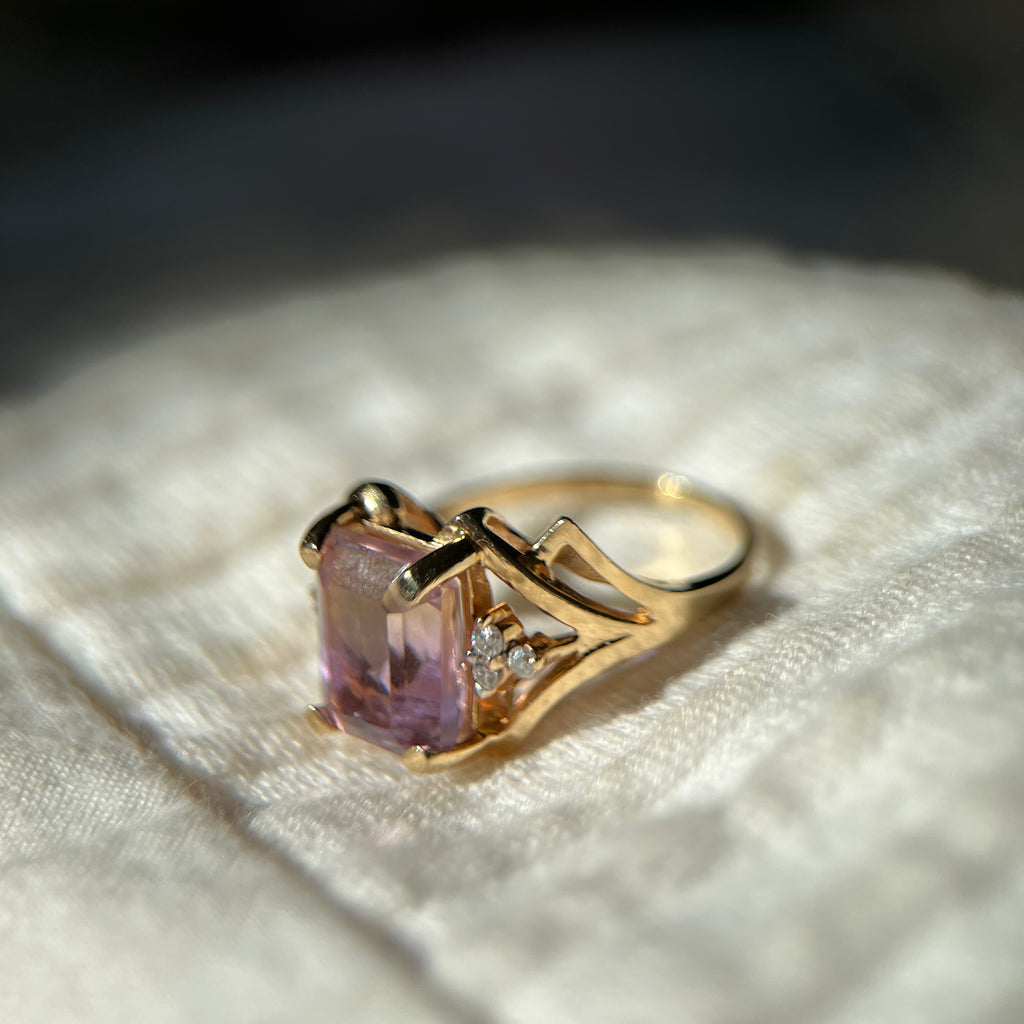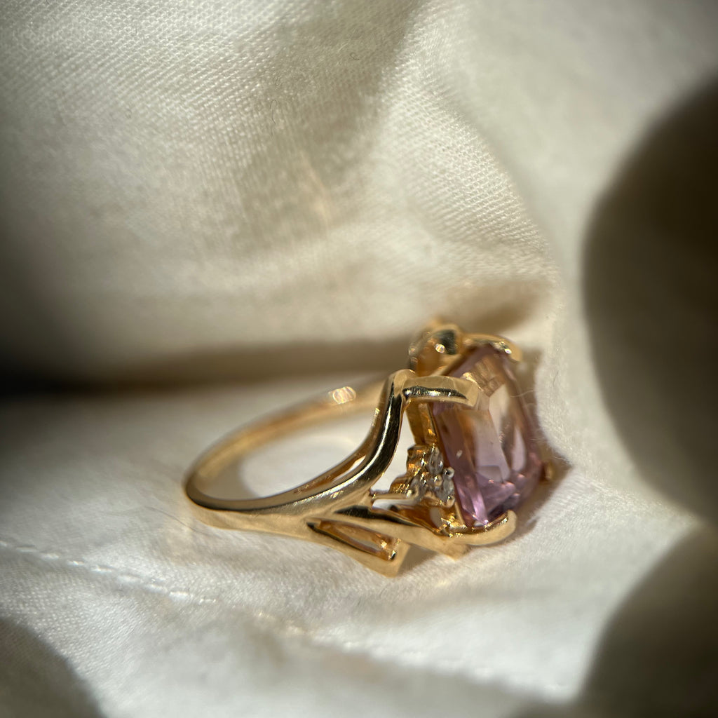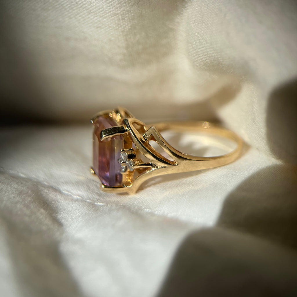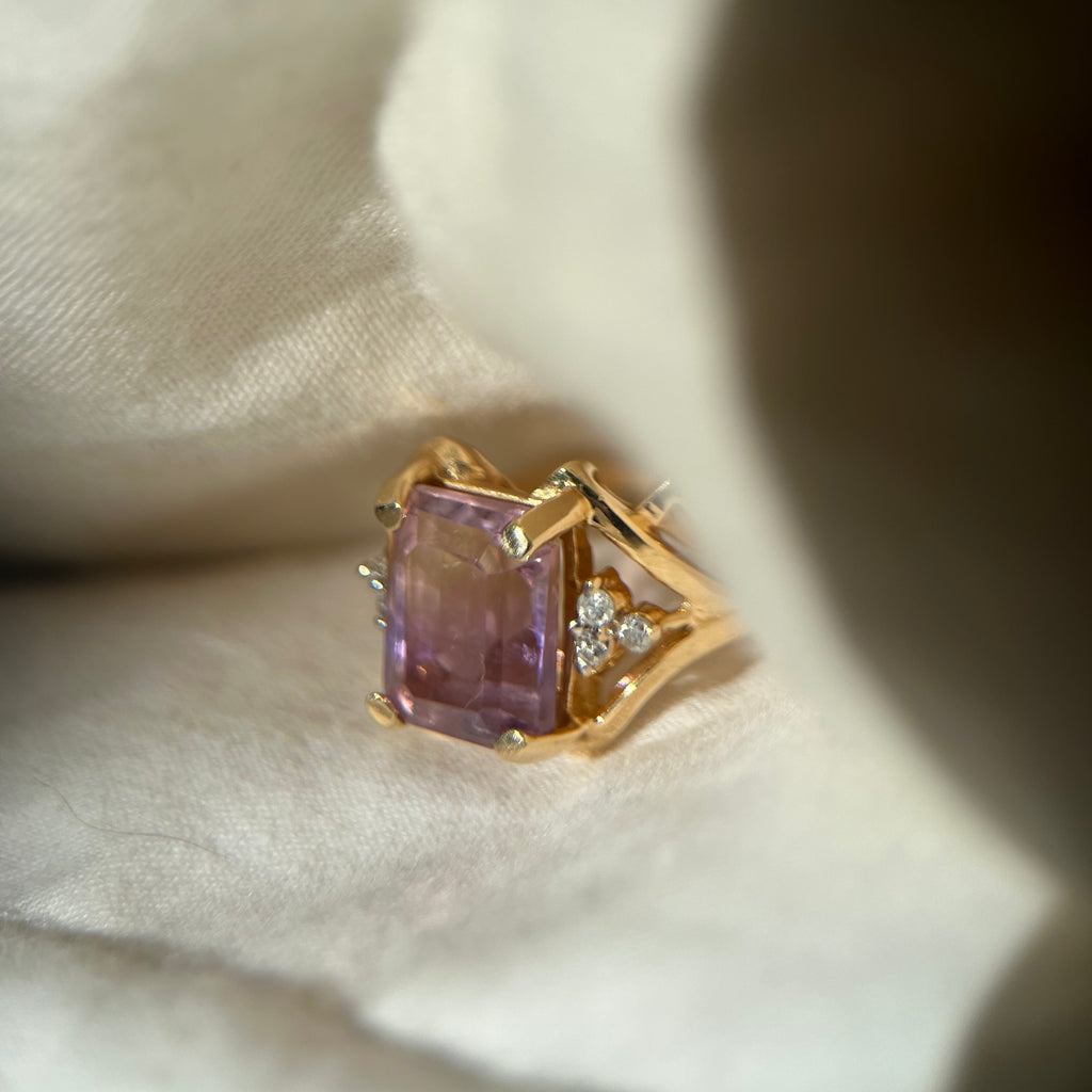 Natürlicher zweifarbiger Ring aus 14 Karat Ametrin und Diamant in Flieder und Gelb aus den 1980er Jahren